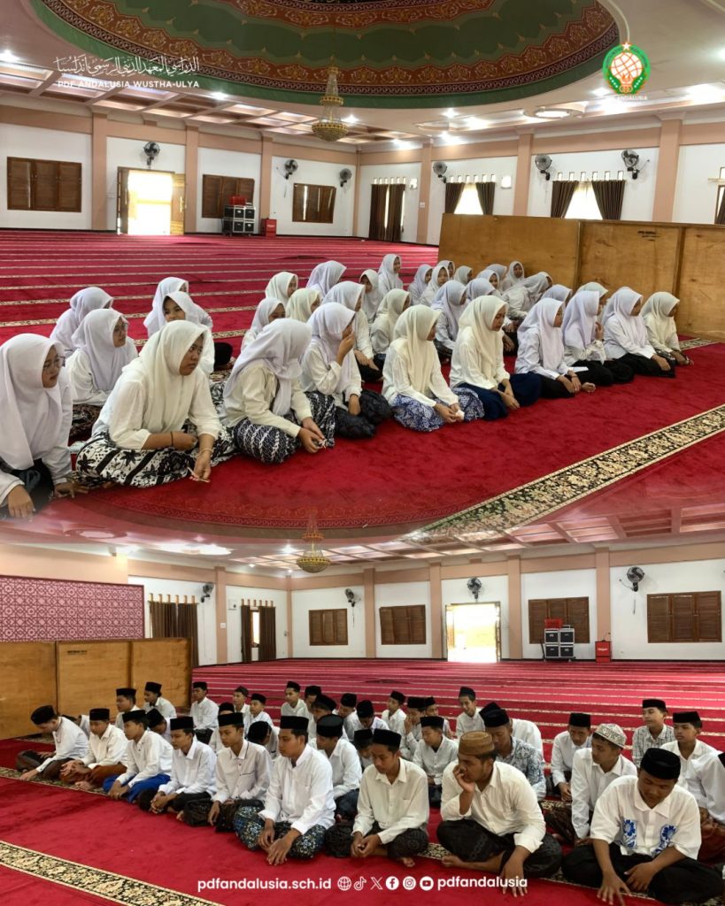 Acara tersebut diikuti oleh seluruh santriwan dan santriwati PDF Andalusia, serta dihadiri oleh Kepala PDF Wustha Andalusia, Lubab El Banan, S.Pd., dan Kepala PDF Ulya Andalusia, Sururudin, Lc., bersama jajaran asatidz dan ustadzah. Kehadiran para pimpinan dan tenaga pendidik semakin menegaskan pentingnya kegiatan ini sebagai bagian dari pembinaan karakter dan penguatan nilai-nilai kebersamaan di lingkungan pesantren.